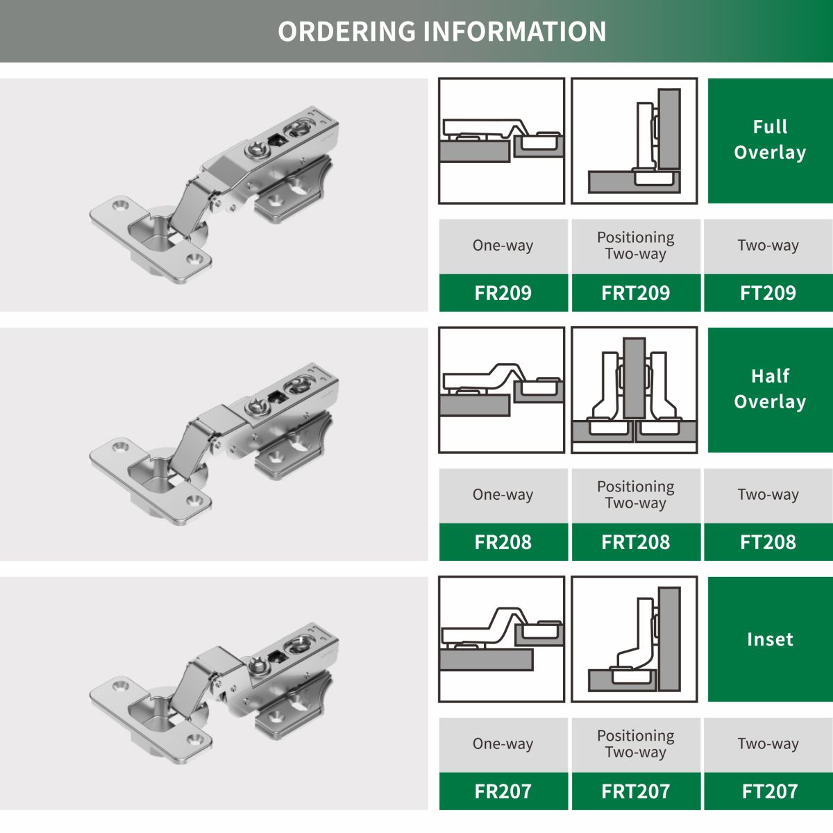 Bản lề đóng êm không thể tách rời (Một chiều/Định vị Hai chiều/Hai chiều)
