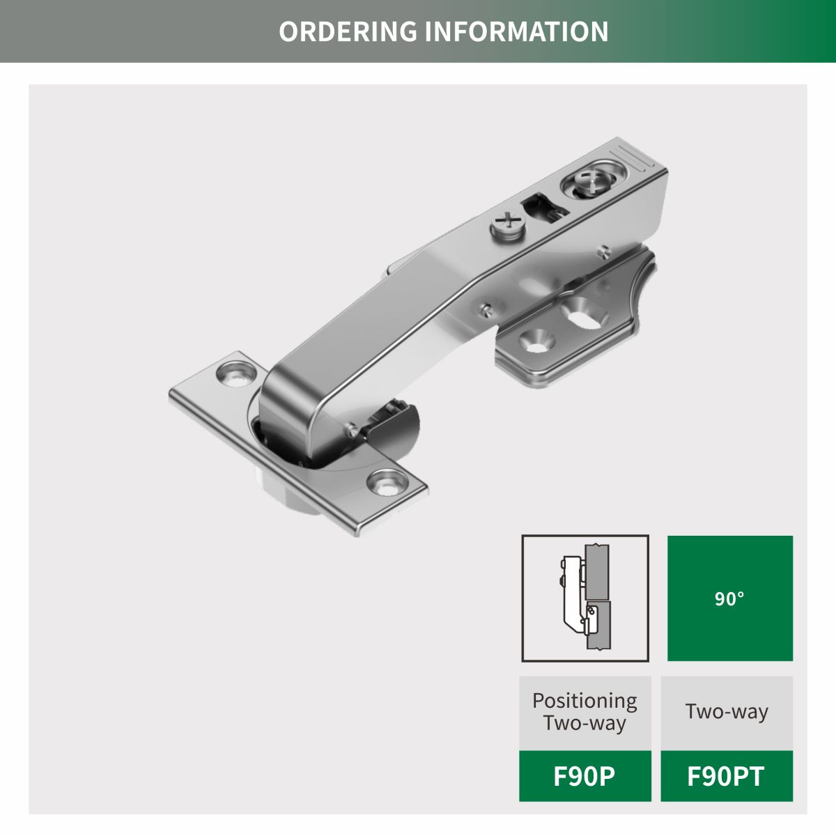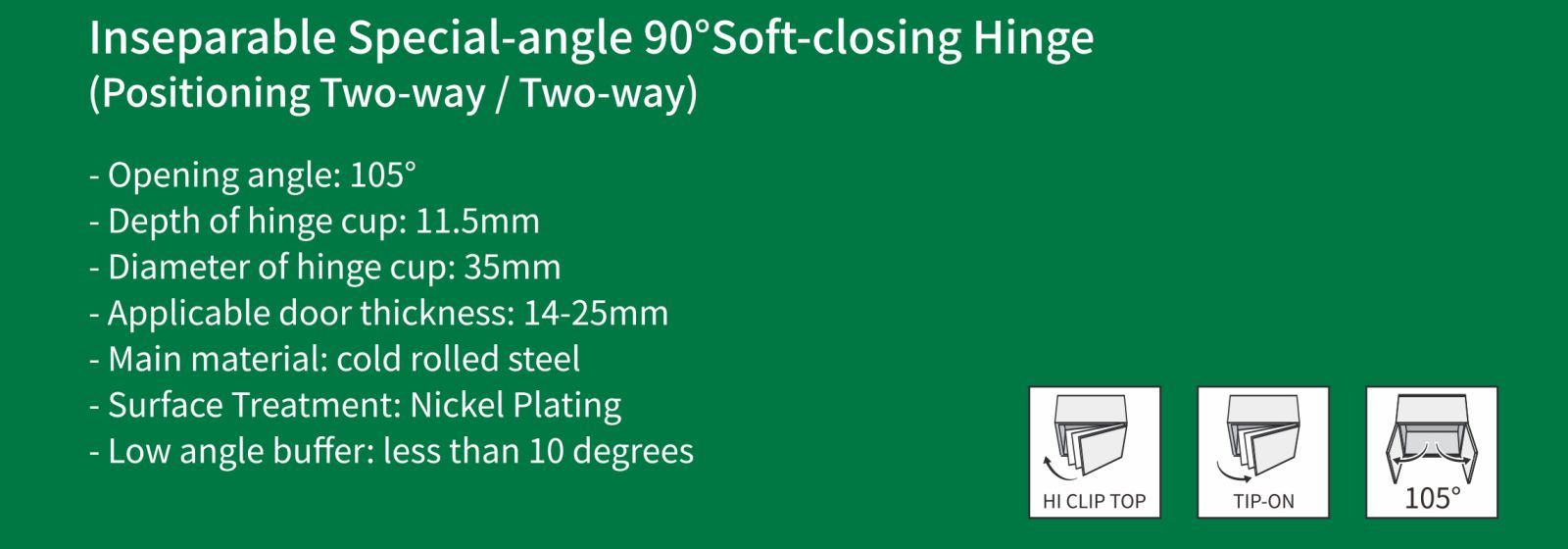 Bản lề đóng êm góc đặc biệt 90° không thể tách rời (Định vị hai chiều / Hai chiều)