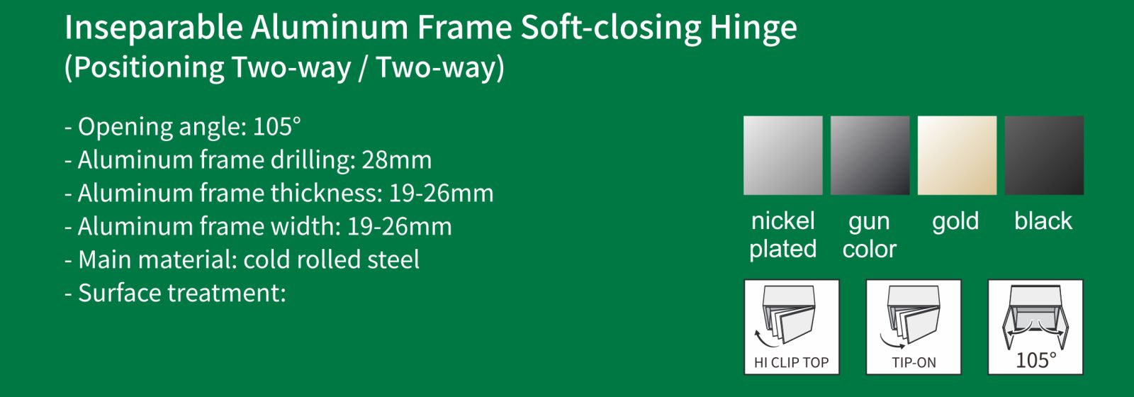 Bản lề đóng êm khung nhôm không thể tách rời (Định vị hai chiều / Hai chiều)