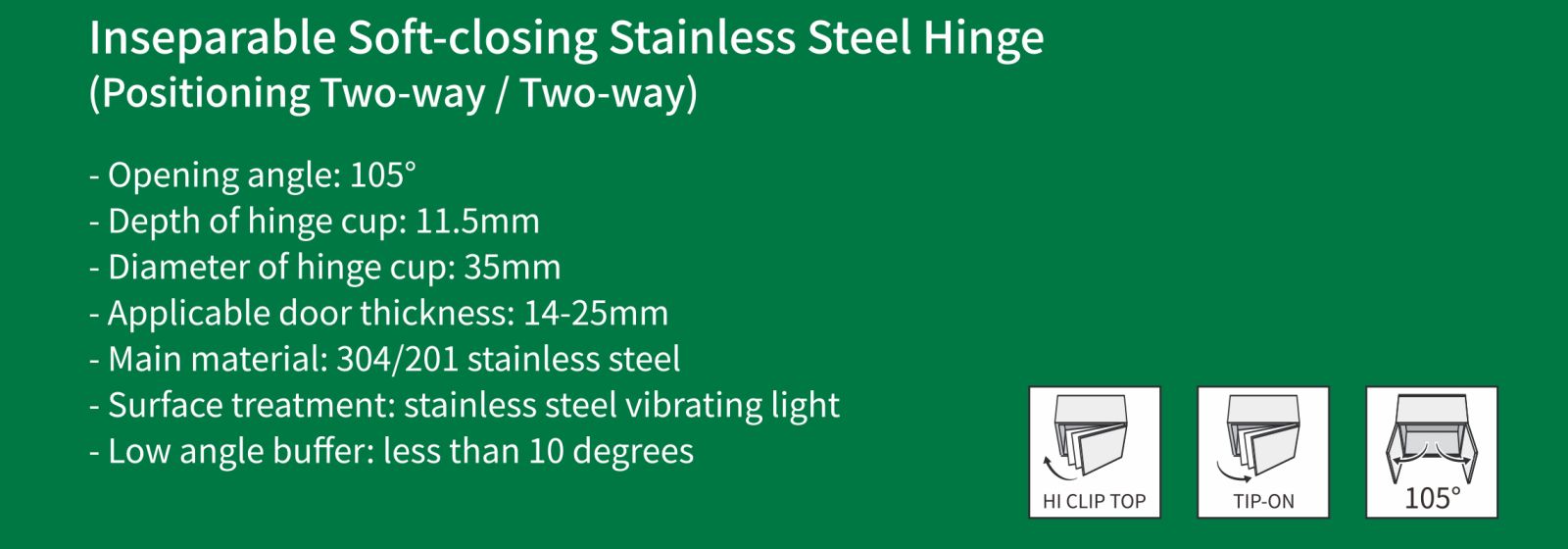Bản lề thép không gỉ đóng êm không thể tách rời