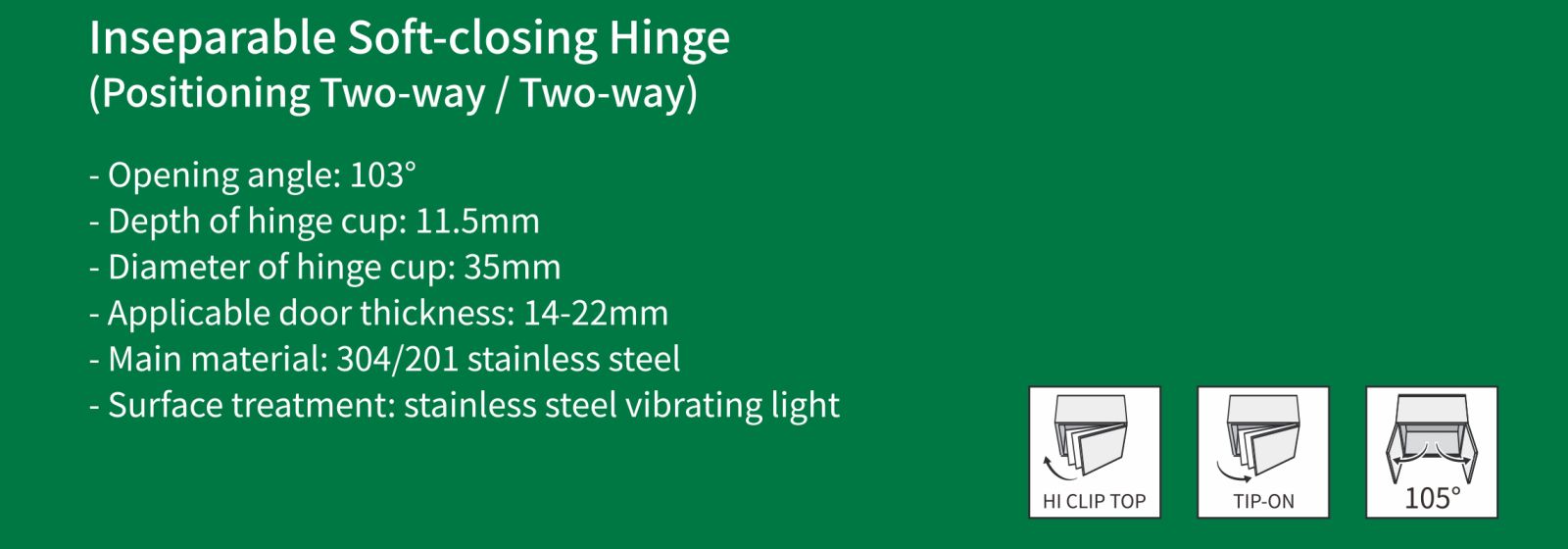 Bản lề đóng êm không thể tách rời (Định vị hai chiều / Hai chiều)